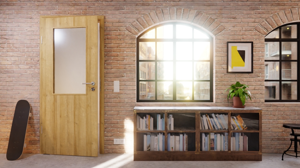 Folia dekoracyjna zamyka skrzydło drzwiowe. Drzwi nadają się szczególnie do codziennego użytkowania w sektorze prywatnym. Prostokątna krawędź drzwi podkreśla minimalistyczny design.