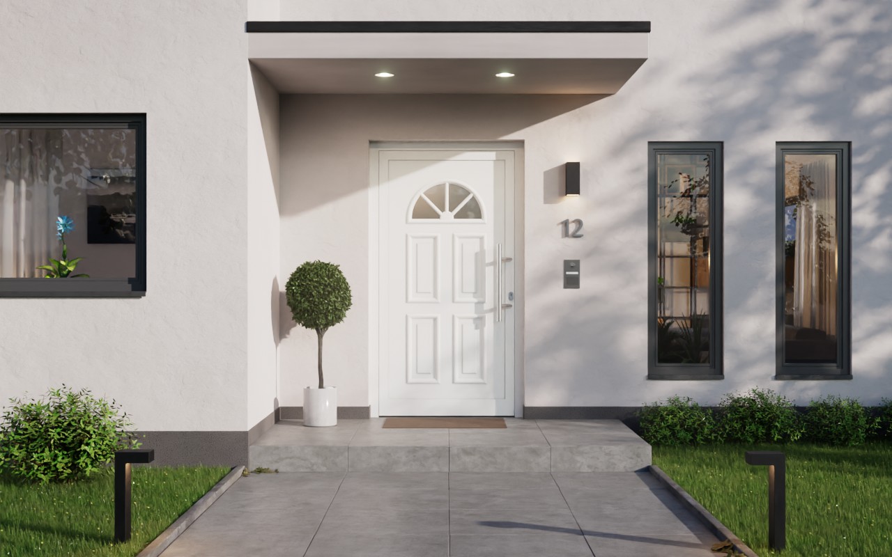Kneer Haustür Alu AT72 EF 124 RAL 9016-RAL 9016 Frontansicht außen