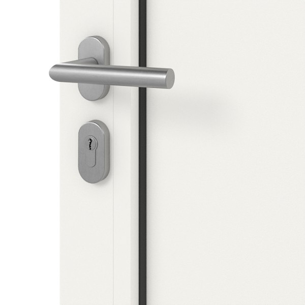 • Wkładka cylindryczna: Profil cylindryczny z ochroną przed wierceniem, funkcją awaryjną i bezpieczeństwa (cylindry w zamku drzwiowym można otworzyć z zewnątrz, nawet gdy od środka jest klucz) oraz 5 kluczami