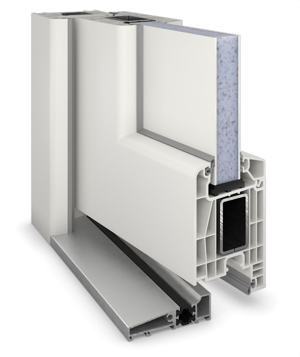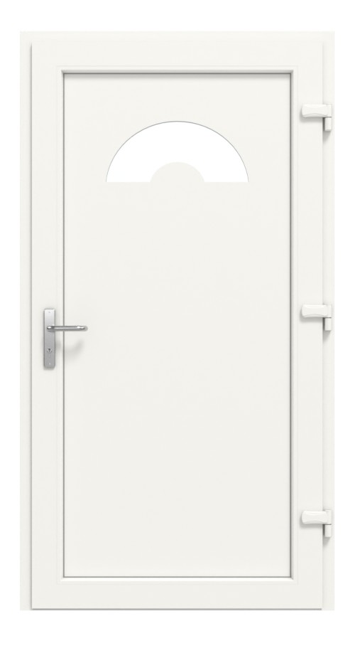 • Konstrukcja: izolowany termicznie profil wielokomorowy w ramie osłonowej i skrzydle z wyjątkowo odpornego na uderzenia PVC, skrzydło drzwiowe z wypełnieniem z tworzywa sztucznego, grubość wypełnienia: 24 mm, uszczelki obwodowe