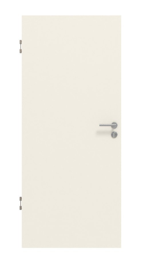 Gładka powierzchnia jest wielokrotnie lakierowana na biało RAL 9010. Dzięki temu uzyskuje się elegancką fakturę, którą można zobaczyć i poczuć. Dzięki opadającej uszczelce dolnej, zamkowi PZ i zawiasom otrzymujesz standardowe akcesoria do swoich drzwi dźwiękoszczelnych. W tym modelu możesz wybrać klasę dźwiękoszczelności 1, 2 lub 3.