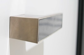 Charakterystyczny design ma elegancki wygląd ze stali nierdzewnej i dzięki indywidualnemu doborowi kolorów wstawki według osobistego życzenia zapewnia harmonię lub kontrast z powierzchnią drzwi. Mimo kanciastej formy klamka ma ergonomicznie wygodne użytkowanie przy otwieraniu i zamykaniu drzwi.