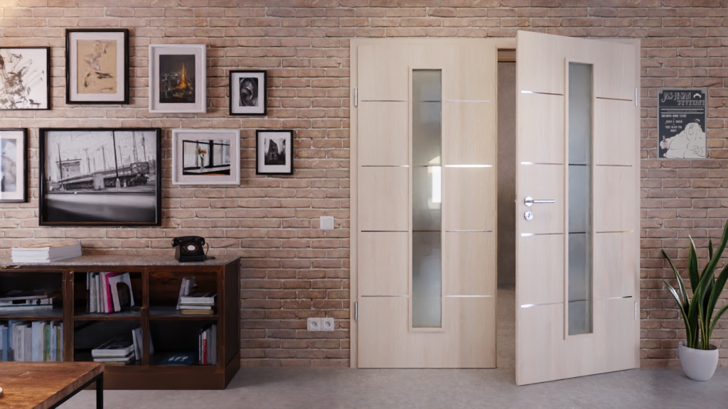 Niedrogie drzwi dwuskrzydłowe o solidnym wykonaniu: Drzwi dwuskrzydłowe 4.11 z powierzchnią CPL w kolorze jasnej akacji wraz z ościeżnicą firmy Classen idealnie dopasowują się do wystroju wnętrza.