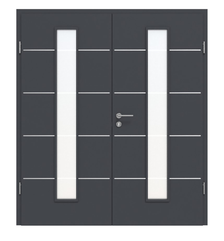 Dwuskrzydłowy model drzwi wewnętrznych od Classen z odporną na zarysowania powierzchnią laminatową w kolorze grafitowym podobnym do RAL 7024: