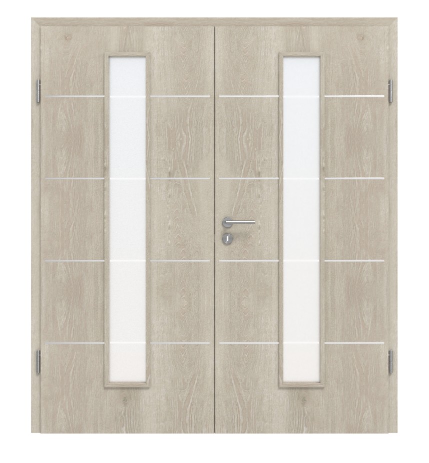 Dwoje drzwi: Drzwi dwuskrzydłowe 4.11 z powierzchnią CPL w kolorze dębu Kendal wraz z ościeżnicą firmy Classen, zachwycają minimalistycznym designem, trwałą konstrukcją i stabilną warstwą wierzchnią.