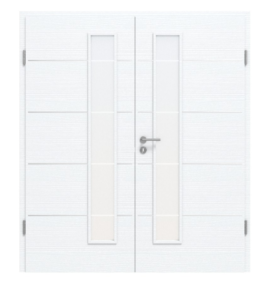 Dwoje drzwi: Drzwi dwuskrzydłowe 4.12 z powierzchnią CPL w kolorze białym ze strukturą firmy Classen przekonują swoją trwałością. W cenie zawarta jest już odpowiednia ościeżnica .