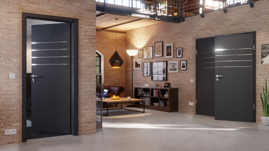 Dwuskrzydłowy model drzwi wewnętrznych od Classen z odporną strukturą powierzchni w grafitowym kolorze podobnym do RAL 7024: