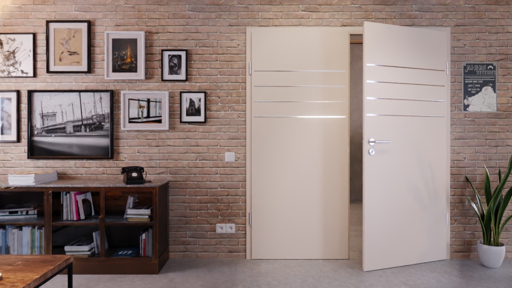 Dwuskrzydłowy model drzwi od Classen z wytrzymałą strukturą powierzchni w kolorze kaszmir: