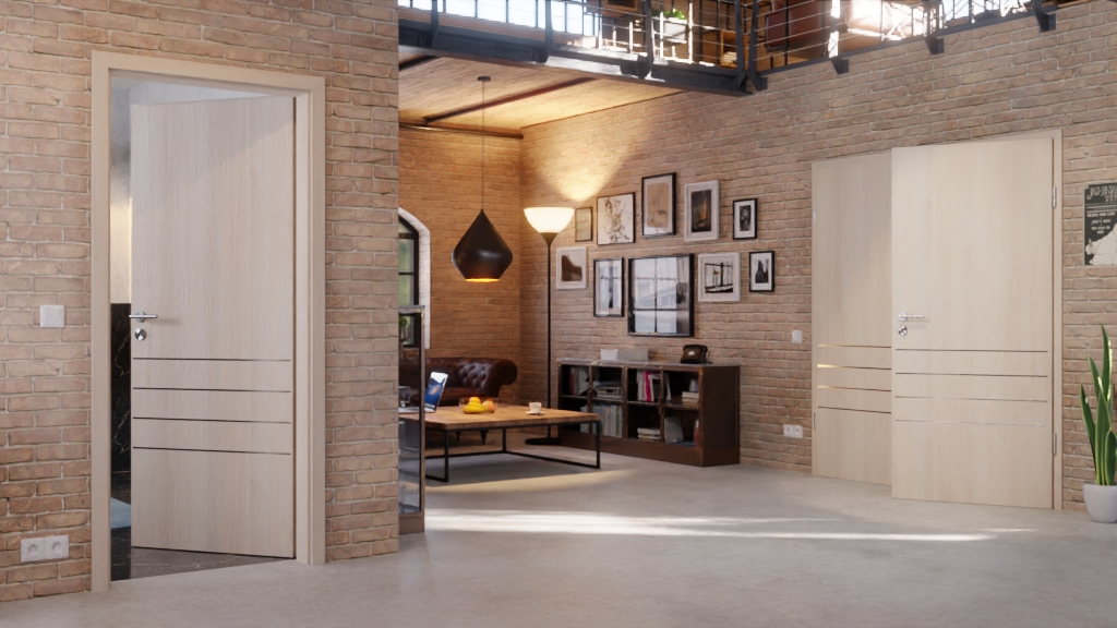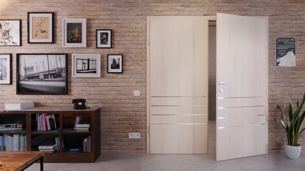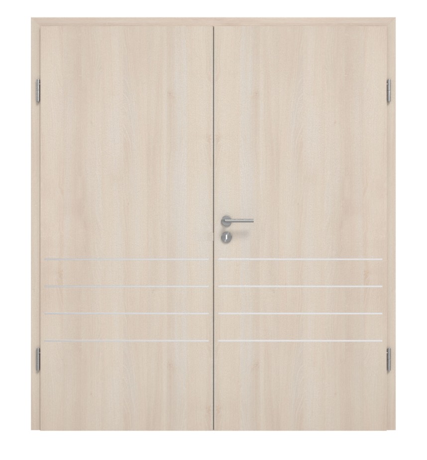 Dwuskrzydłowy model drzwi wewnętrznych od Classen z odporną na światło powłoką laminatową w jasnym akacjowym kolorze: