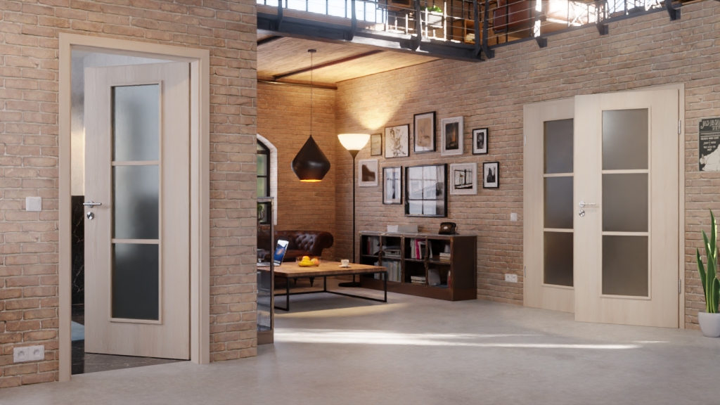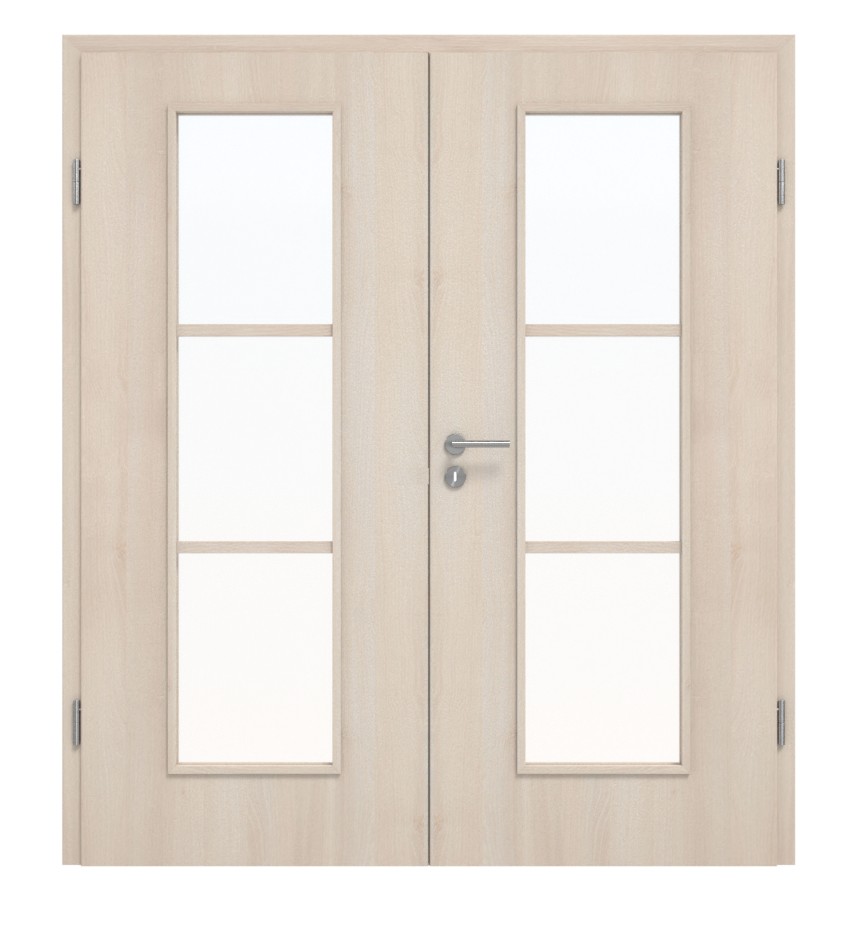 Dwuskrzydłowy model drzwi wewnętrznych od Classen z trwałą powierzchnią laminatową w jasnym akacjowym kolorze: