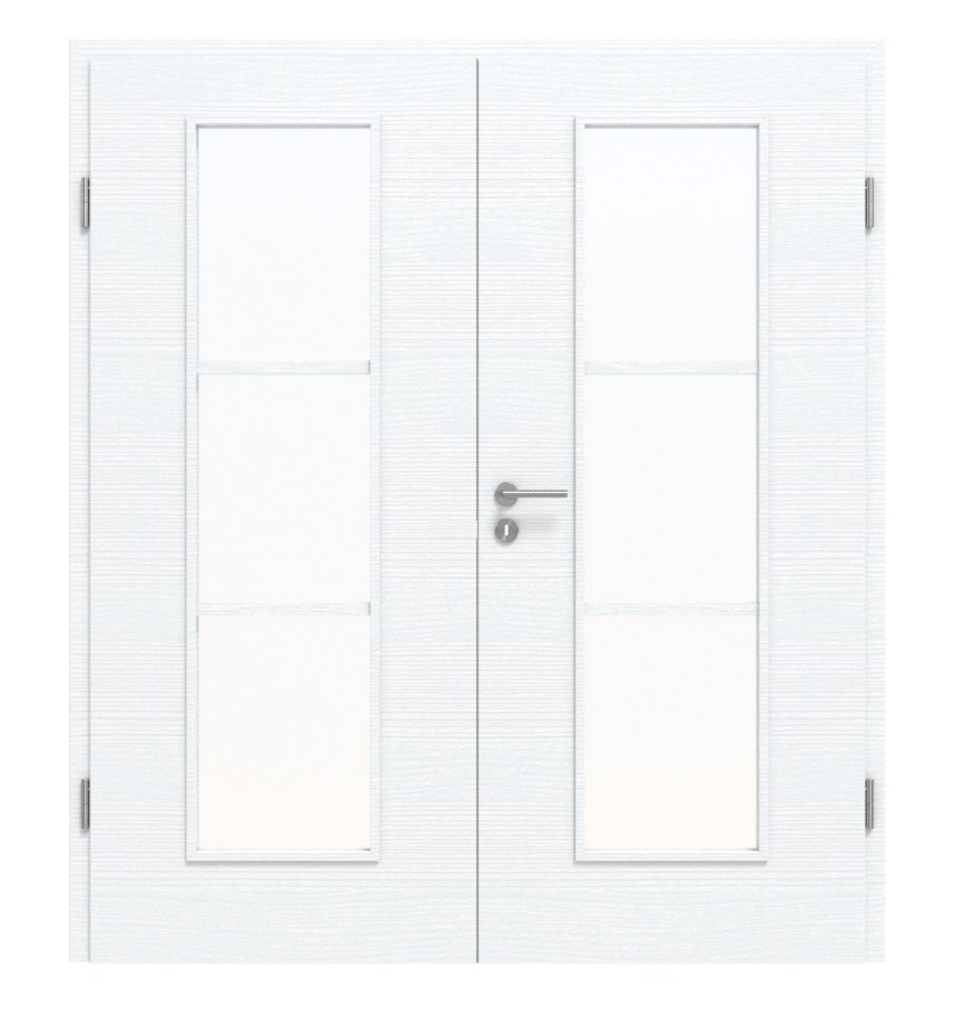 Dwuskrzydłowy model drzwi wewnętrznych od Classen z stabilną laminowaną powłoką w białej strukturze: