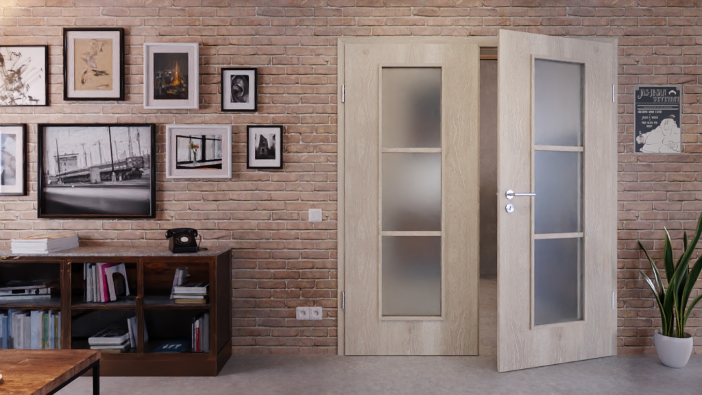 Słoje przyrostu rocznego i sęki tworzą naturalny design, który gwarantuje dobre samopoczucie w Twoim domu. Trzyczęściowe przeszklenia na środku skrzydła wpuszczają jasne światło do pomieszczeń.