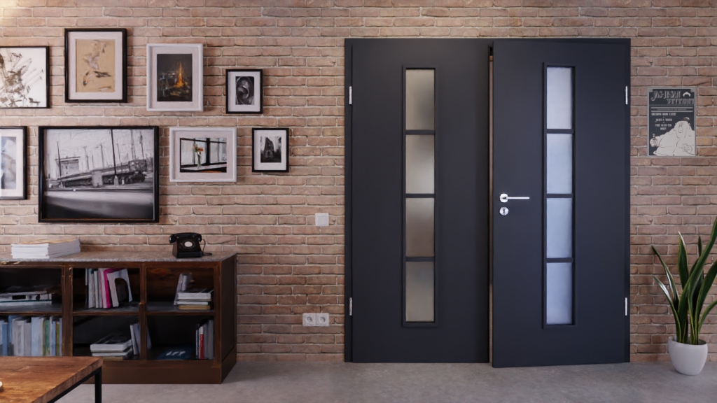 Dwoje drzwi: Drzwi dwuskrzydłowe 4.6 z powierzchnią CPL w kolorze grafitowym podobnym do RAL 7024 wraz z ościeżnicą firmy Classen zachwycają minimalistycznym designem, trwałą konstrukcją i stabilną warstwą wierzchnią.