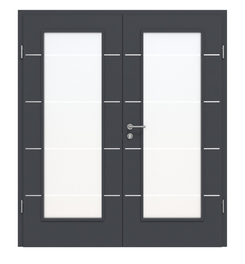 Dwuskrzydłowy model drzwi od Classen z odporną na światło powłoką laminatową w kolorze grafitowym podobnym do RAL 7024: