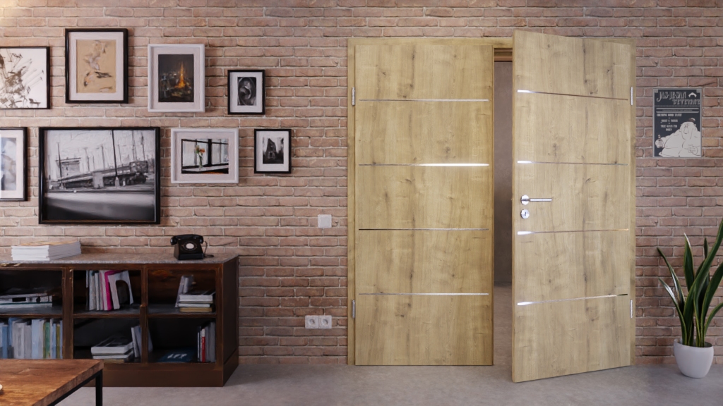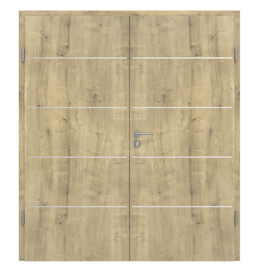 Rustykalny dekor dębowy emanuje ciepłą i przytulną atmosferą. O wyjątkowy charakter dbają cztery listwy, które równomiernie przebiegają poziomo przez każde skrzydło drzwi.