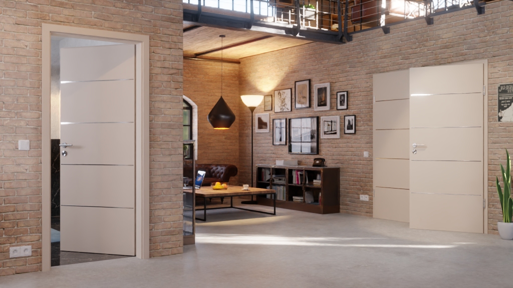 Drzwi podwójne od Classen z odporną strukturą powierzchni w kolorze kaszmir: