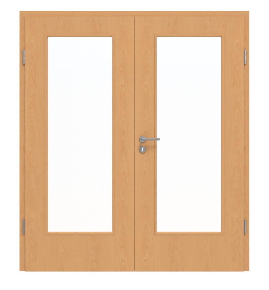 W centrum każdego skrzydła znajduje się duże przeszklenie. Zaleta drzwi wewnętrznych: Szkło jest wliczone w cenę. Dodatkowo powierzchnia w kolorze buku stanowi ponadczasowe wykończenie.