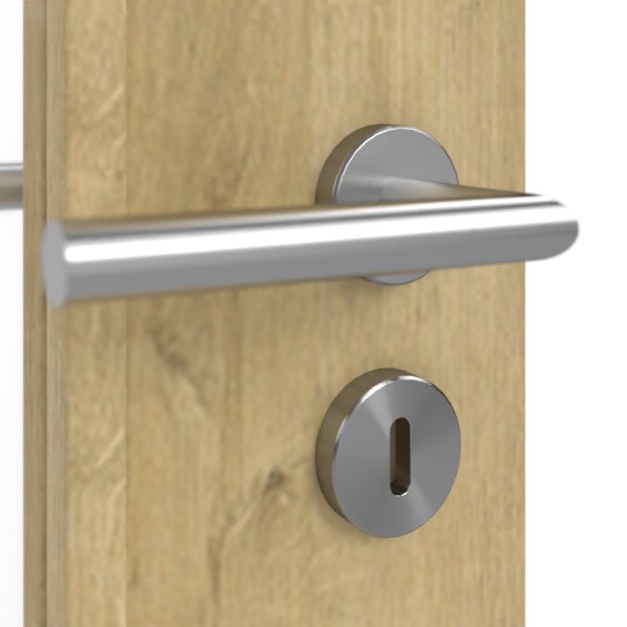 Płyta drzwiowa pokryta jest folią dekoracyjną. Dzięki temu drzwi te nadają się do regularnego użytkowania w warunkach domowych. Ponadto skrzydła drzwi mają kanciaste krawędzie, które podkreślają ich dyskretny wygląd.