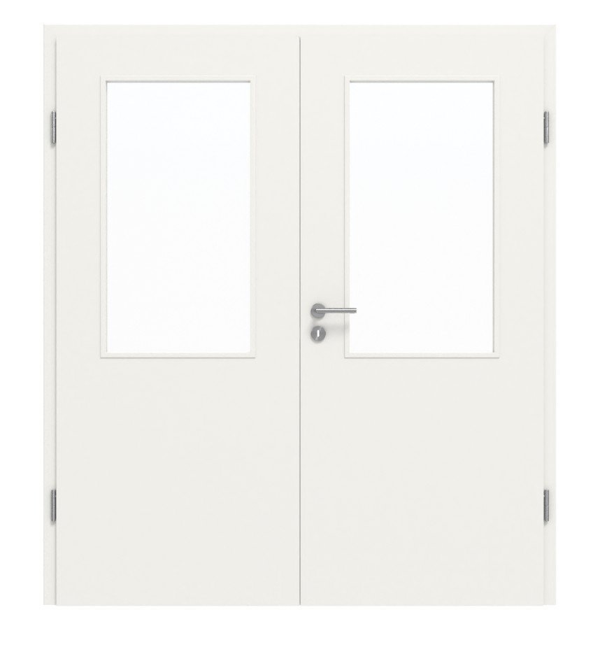 Przystępne cenowo drzwi wewnętrzne z dwoma skrzydłami: Drzwi podwójne Basic 4.20 w bieli podobnej do RAL 9016 zachwycają swoim imponującym wyglądem i atrakcyjną ceną.