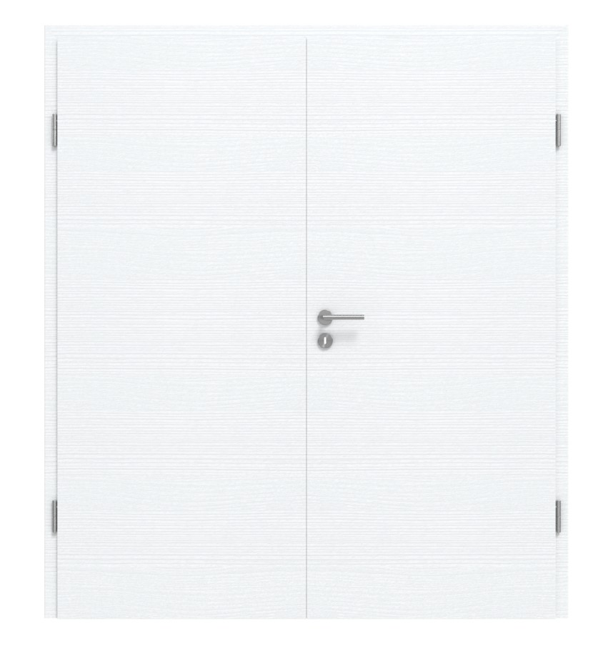 Drzwi w podwójnym zestawie: Drzwi Drzwi dwuskrzydłowe 4.1 z powierzchnią CPL w kolorze bieli ze strukturą wraz z ościeżnicą firmy Classen zachwycają minimalistycznym wzorem, trwałą konstrukcją i stabilną warstwą wierzchnią.