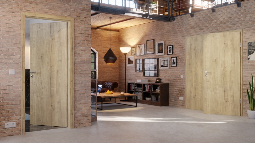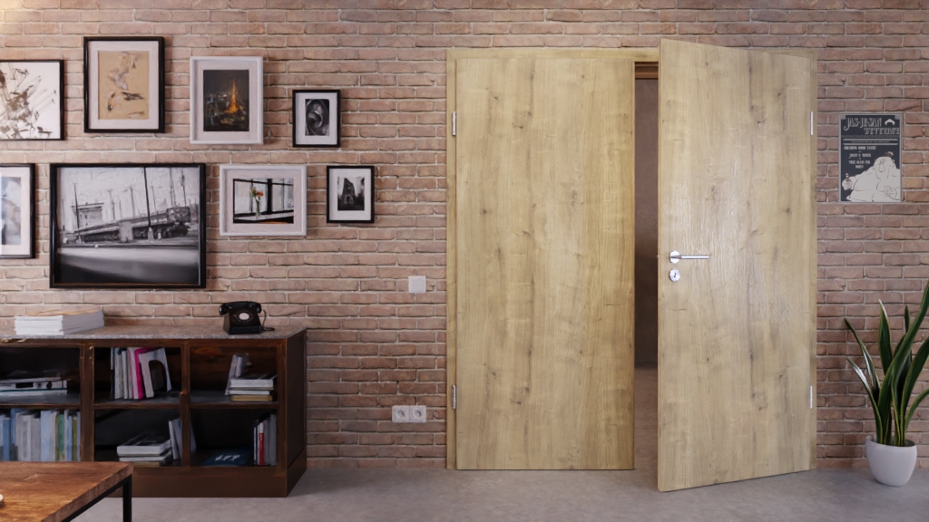 Na podwójnym skrzydle drzwi widoczne są żywice, pierścienie roczne i odcienie. Nadają one modelowi żywy i naturalny wygląd. Żółto-brązowy kolor podstawowy wprowadza ciepło do Twojego wnętrza.