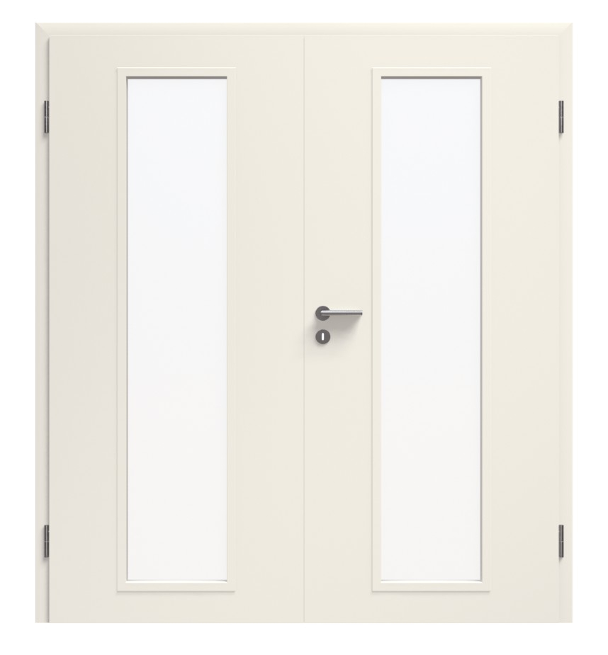 Szerokie otwory świetlne w środku skrzydeł drzwiowych dają możliwość uzyskania przejrzystego klimatu mieszkalnego. Otoczone eleganckimi listwami szklanymi, mogą być wykonane na równi z powierzchnią. Różne opcjonalne rodzaje szkła spełnią wszelkie oczekiwania. Czysty biały kolor w RAL 9010 jest nakładany w procesie wielowarstwowego lakierowania.