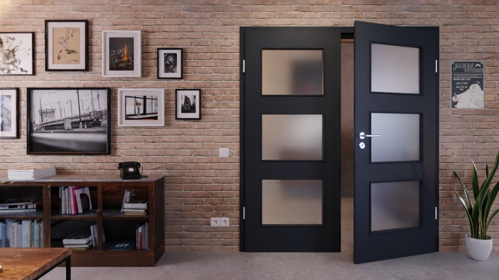 Stabilne drzwi podwójne z powierzchnią laminatową odporną na ścieranie w ultramatowym antracycie: