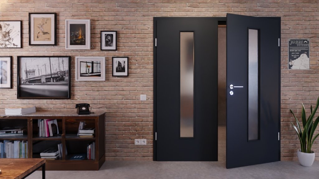 Stabilny model drzwi wewnętrznych z dwoma skrzydłami i odporną na uderzenia powierzchnią laminatową w ultramatowym antracycie: