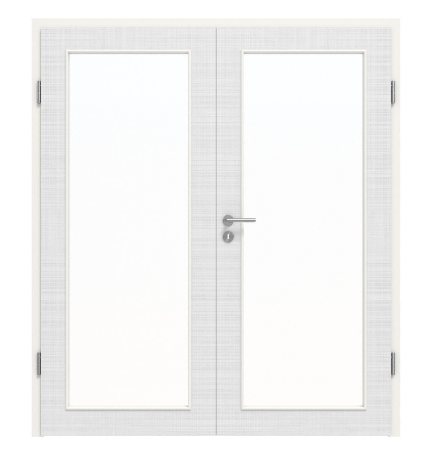 Na skrzydle drzwiowym widoczne są drobne linie, które nadają temu dwuskrzydłowemu modelowi naturalny wygląd lnianego płótna. Dzięki dwóm dużym wycięciom na szyby do pomieszczeń wpada dużo więcej światła.