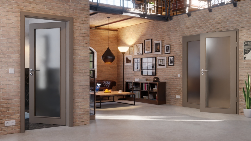 Dwuskrzydłowy model drzwi wewnętrznych z wielowarstwową powłoką lakierniczą: