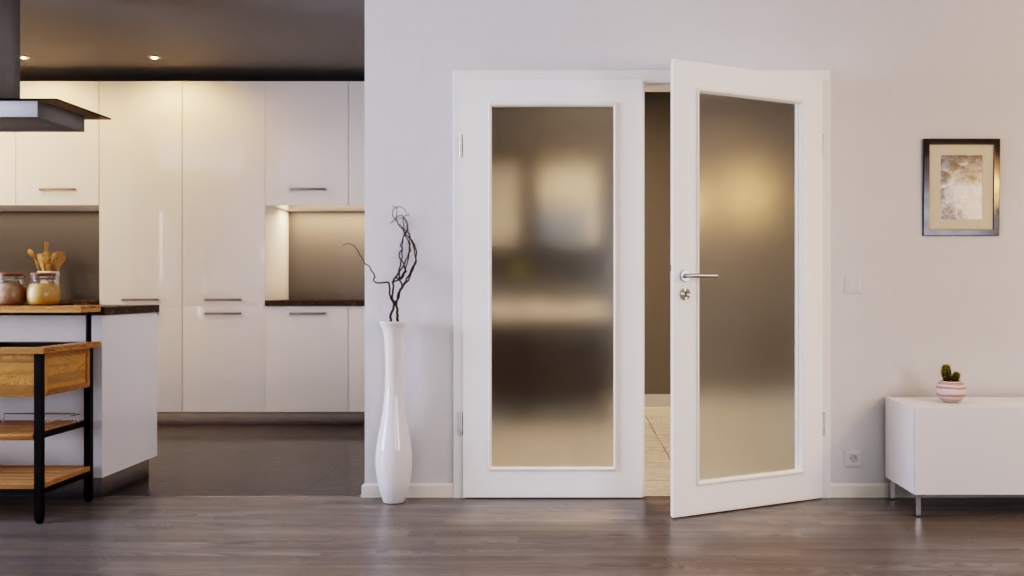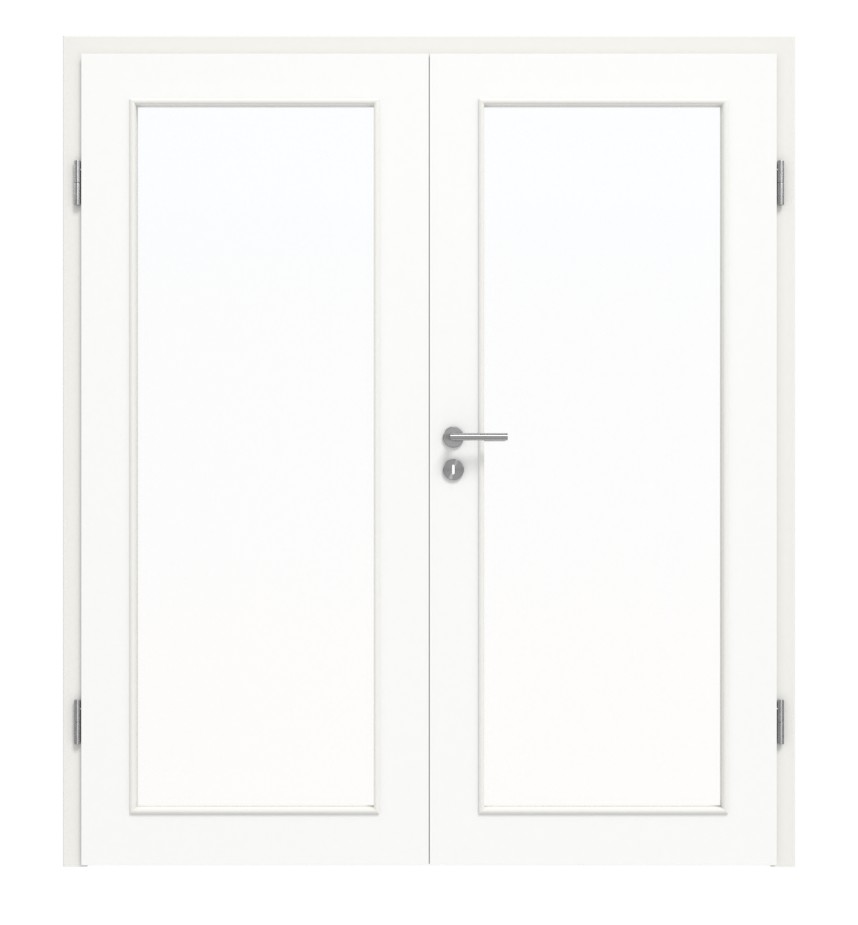 Stabilny model drzwi wewnętrznych z dwoma skrzydłami i odporną na uderzenia powierzchnią laminatową w ultramatowej bieli: