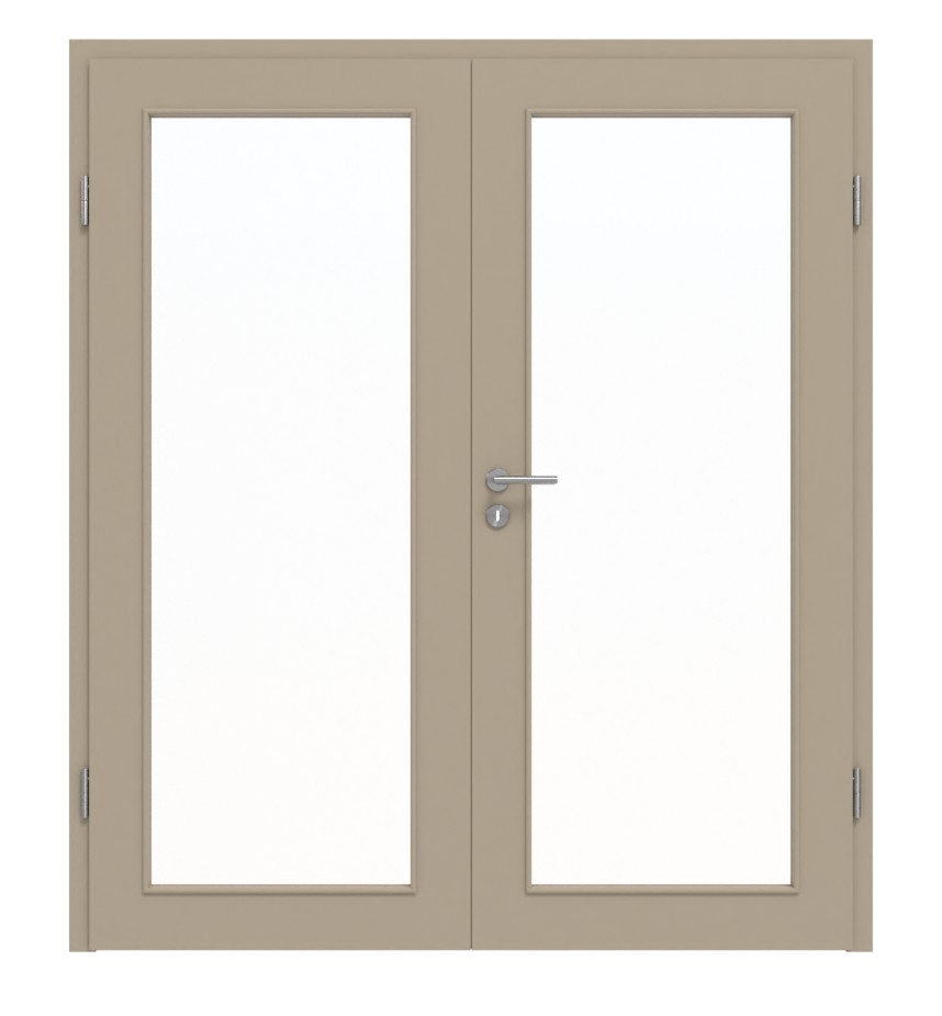 Stabilne drzwi podwójne z powierzchnią laminatową odporną na ścieranie w ultramatowym taupe: