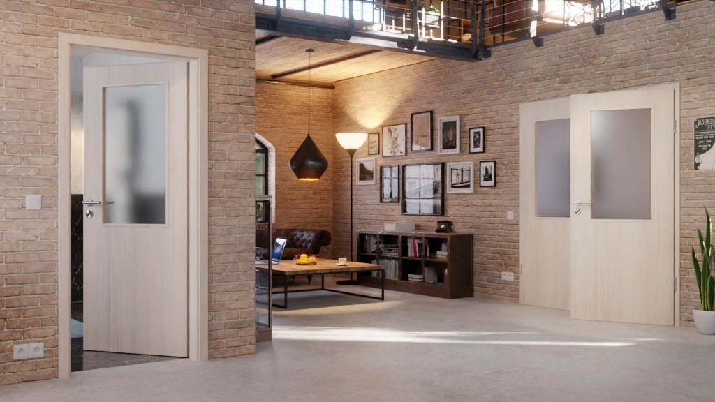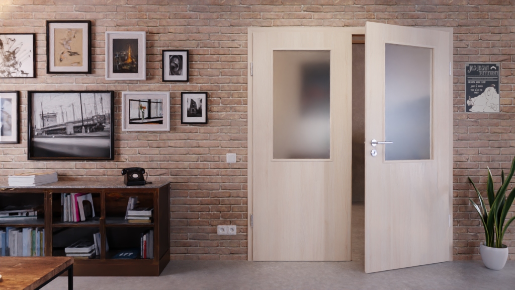 Drzwi wewnętrzne podwójne z stabilną warstwą laminatu w jasnym akacjowym: