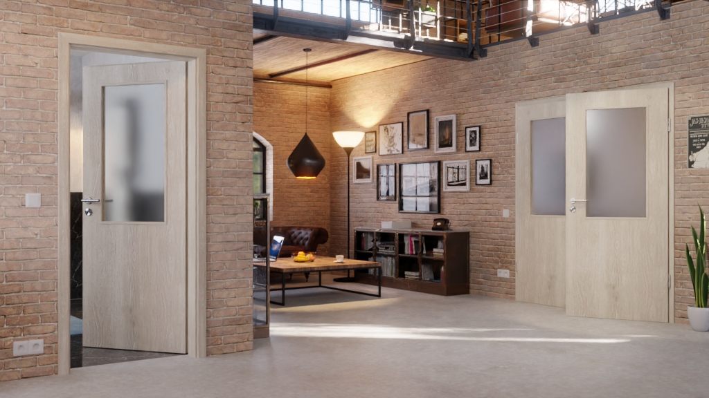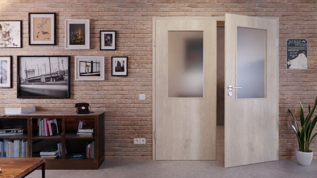 Na obu skrzydłach drzwi widoczne są wyraziste linie, sęki i cieniowania, które nadają modelowi naturalny wygląd. Przeszklenie zapewnia otwartą i przyjazną atmosferę w pomieszczeniu mieszkalnym.