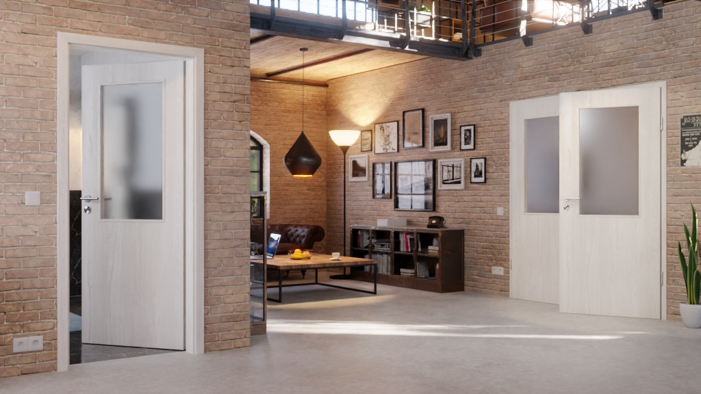 • Dwuskrzydłowe drzwi wewnętrzne z solidną okładziną CPL w kolorze jesionu norweskiego