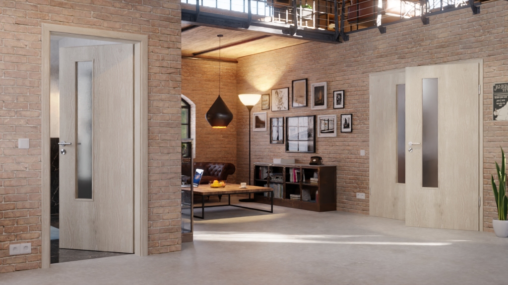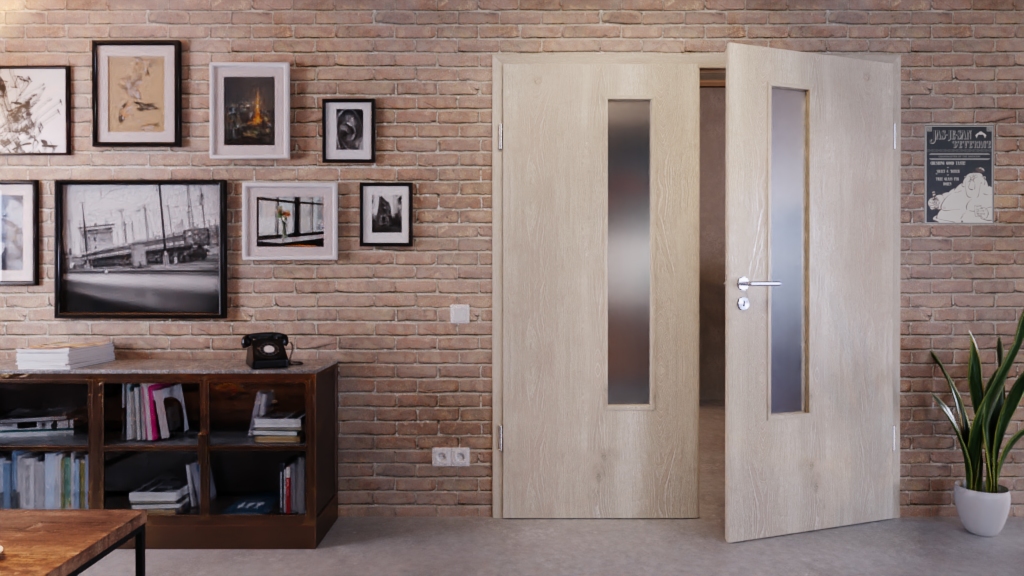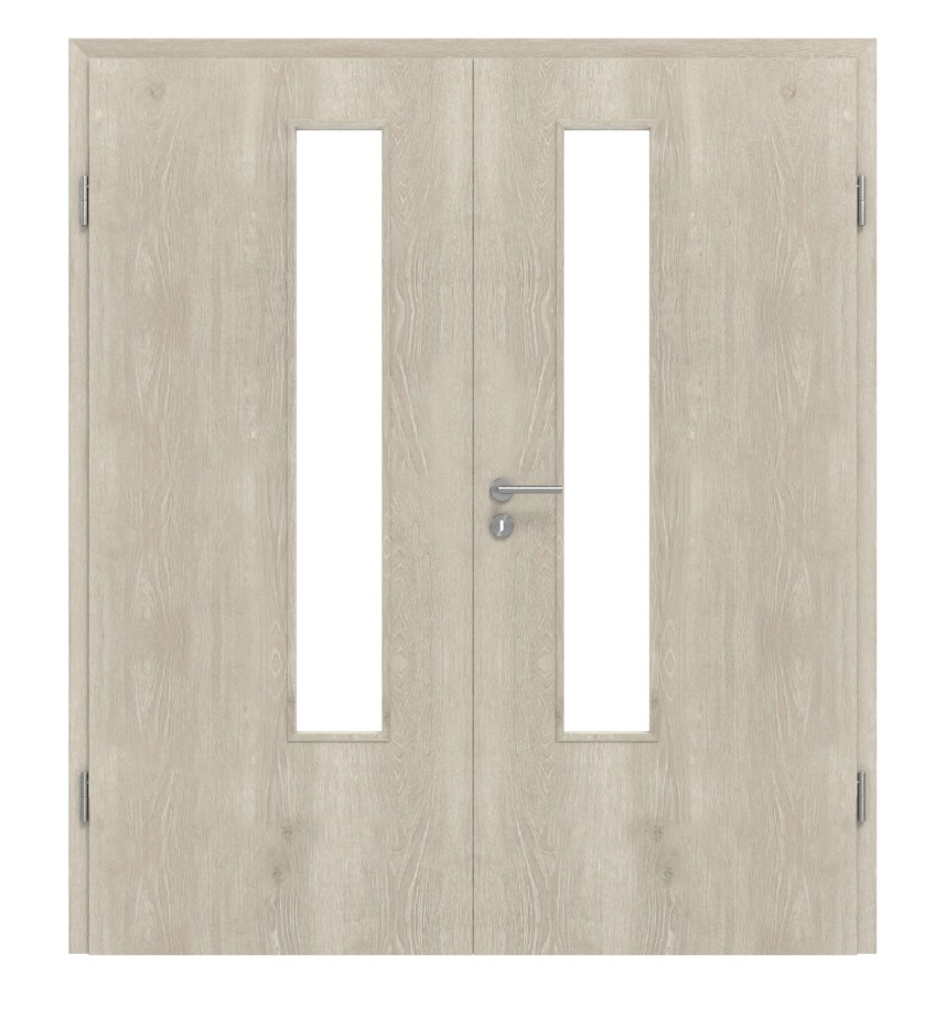 O designie dekoru dębowego decydują wtrącenia sęków i usłojenie. Dzięki dwóm przeszkleniom dwuskrzydłowy model drzwi wygląda wyjątkowo przyjaźnie. Jeśli zależy Ci na prywatności, możesz również wybrać opcję satynowaną zamiast przezroczystego szkła.