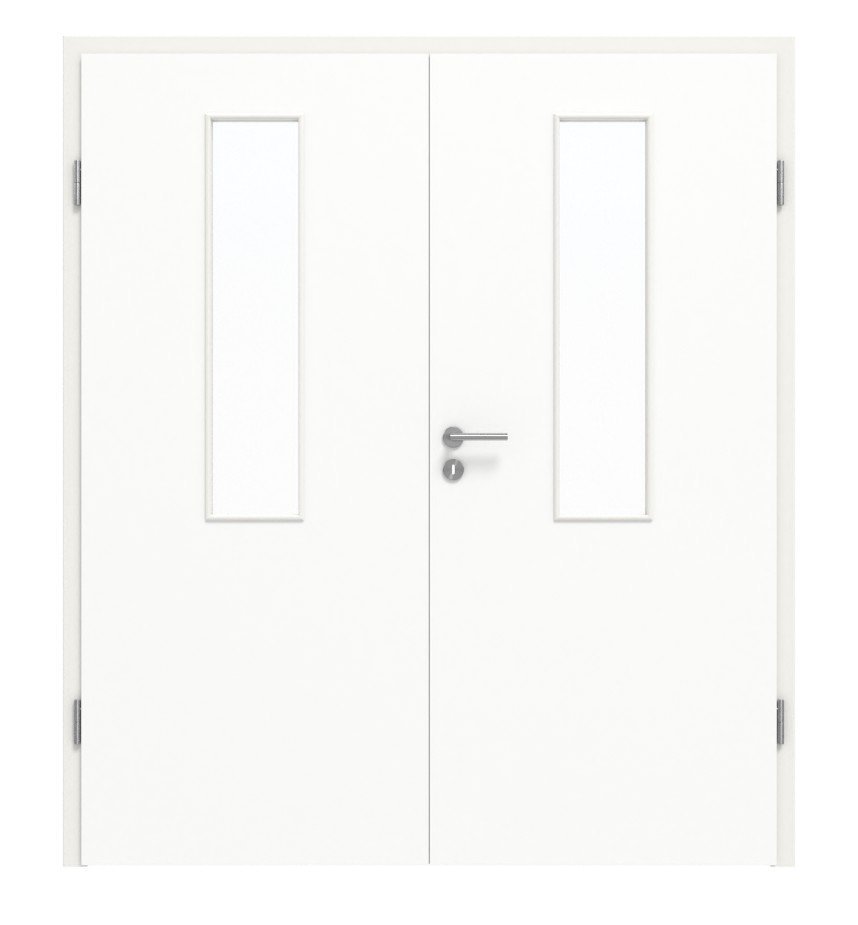 Stabilny model drzwi wewnętrznych z dwoma skrzydłami i odporną na uderzenia powierzchnią laminatową w ultramatowej bieli: