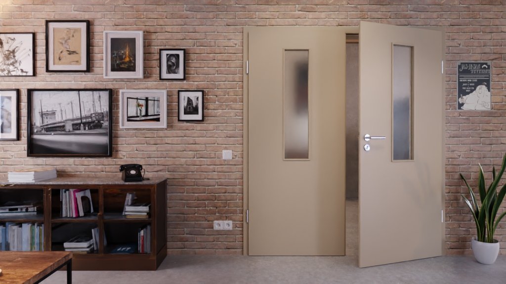 Stabilny model drzwi wewnętrznych z dwoma skrzydłami i odporną na uderzenia powierzchnią laminatu w ultramatowym taupe: