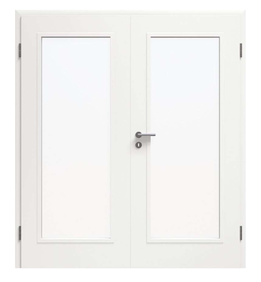 Minimalistyczny design sprawia, że model idealnie wpasowuje się w niemal każde wnętrze. Wygląd skrzydeł drzwiowych określają duże przeszklenia. Otwory wydają się niemal wypełniające. Możliwe jest również wykonanie szklanych listew na poziomie powierzchni. Do wyboru dostępne są różne rodzaje szkła do aranżacji otworów. Czysty biały kolor w RAL 9016 jest nakładany w procesie wielowarstwowego lakierowania.