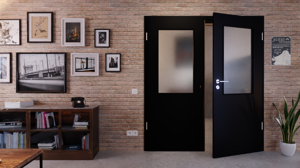 W górnej części każdego skrzydła drzwiowego znajduje się szeroki wycięty fragment szklany. Wpuszcza on do pomieszczenia dużo światła, tworząc w ten sposób pozytywną atmosferę.