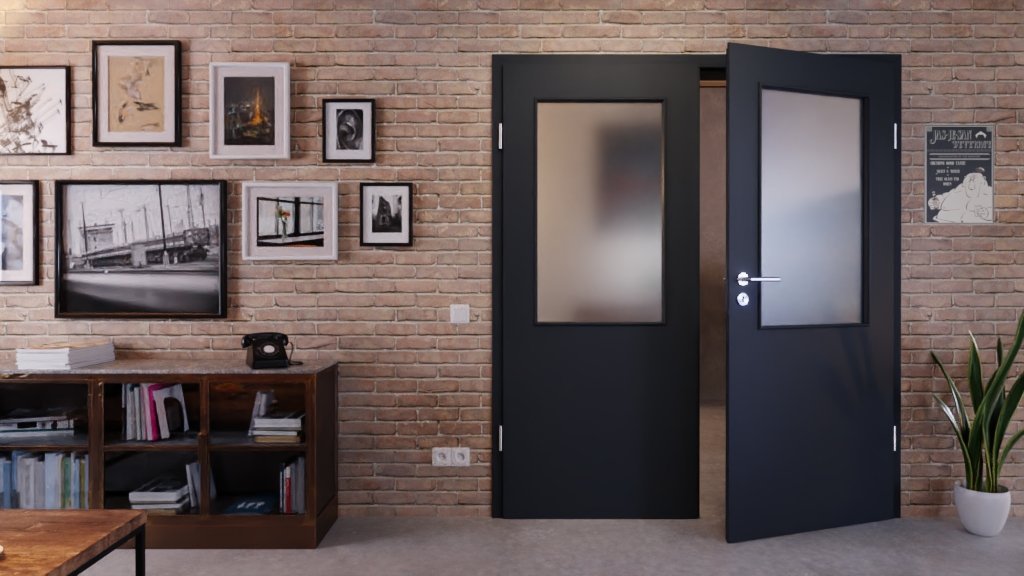Robustne drzwi podwójne z odporną na zarysowania laminatową powłoką w ultramatowym antracycie: