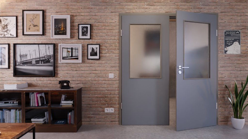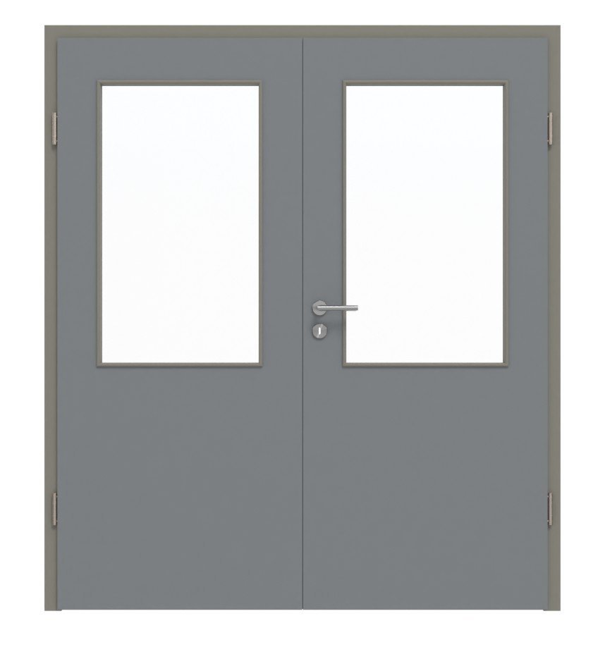 Stabilny model drzwi wewnętrznych z dwoma skrzydłami i odporną na uderzenia powierzchnią laminatową w ultramatowym kolorze szarości pyłowej: