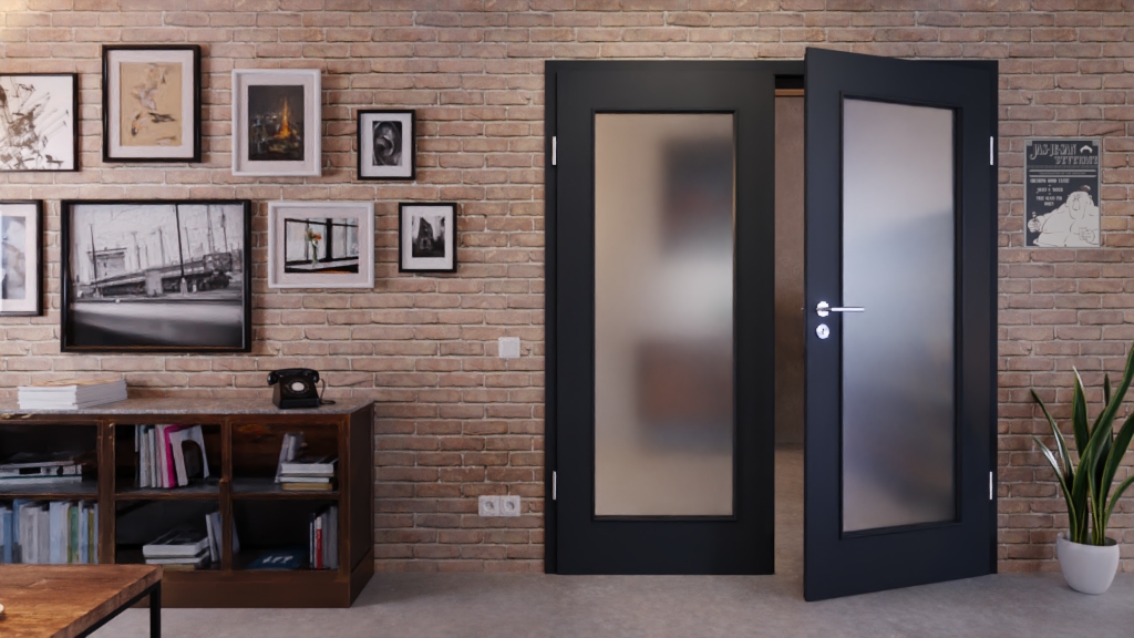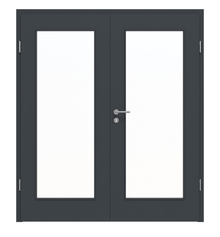 Robustne drzwi wewnętrzne z dwoma skrzydłami i odporną na zarysowania powłoką w ultramatowym antracycie: