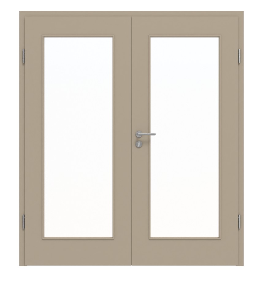Stabilne drzwi podwójne z powierzchnią laminatową odporną na ścieranie w ultramatowym taupe: