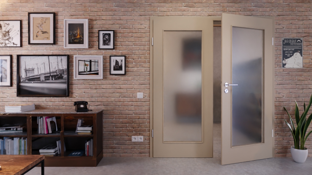 Na stylową aranżację otwartej przestrzeni dziennej: Drzwi dwuskrzydłowe LA 8 w kolorze ultramatowym taupe z kolekcji Proline Concepto marki Hörmann to idealny wybór.