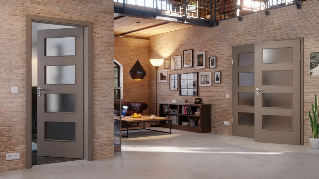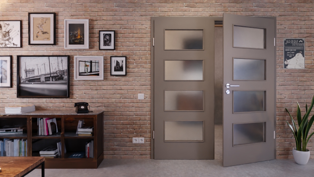 Model drzwi wewnętrznych z podwójnymi skrzydłami o odpornej na uderzenia konstrukcji: