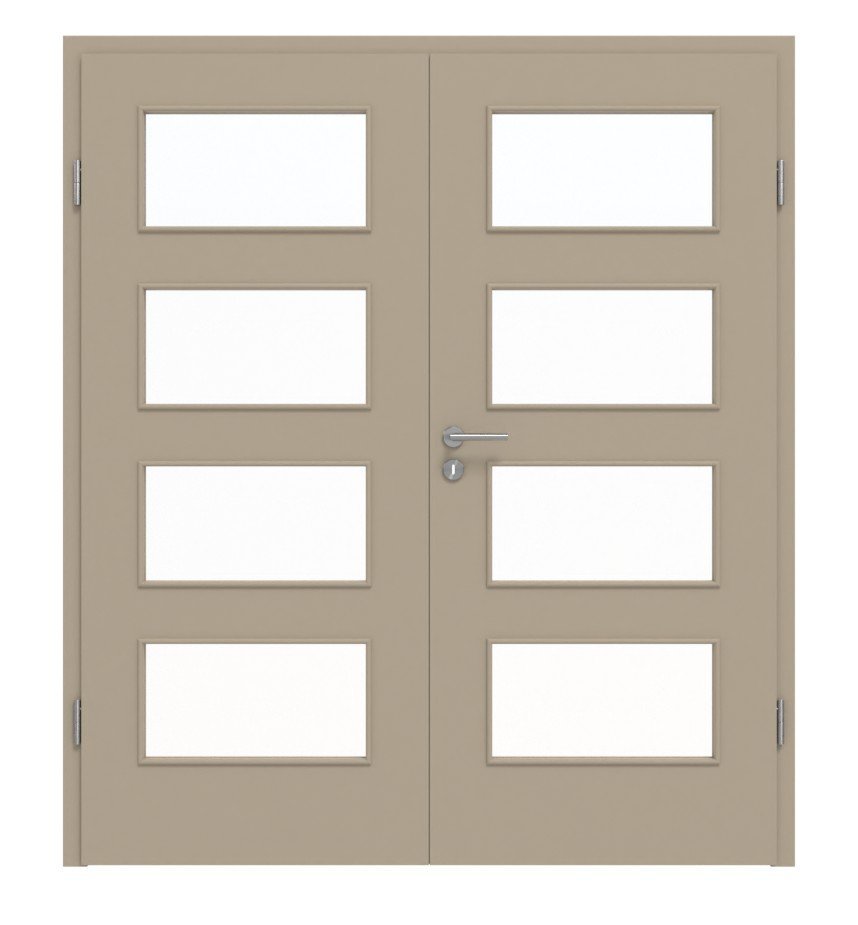 Stabilne drzwi podwójne z powierzchnią laminatową odporną na ścieranie w ultramatowym taupe: