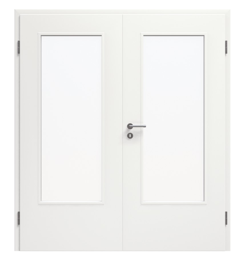 Łatwe w czyszczeniu wykonanie ościeżnicy w białym lakierze RAL 9016 dla Twojego modelu drzwi wewnętrznych z dwoma skrzydłami: