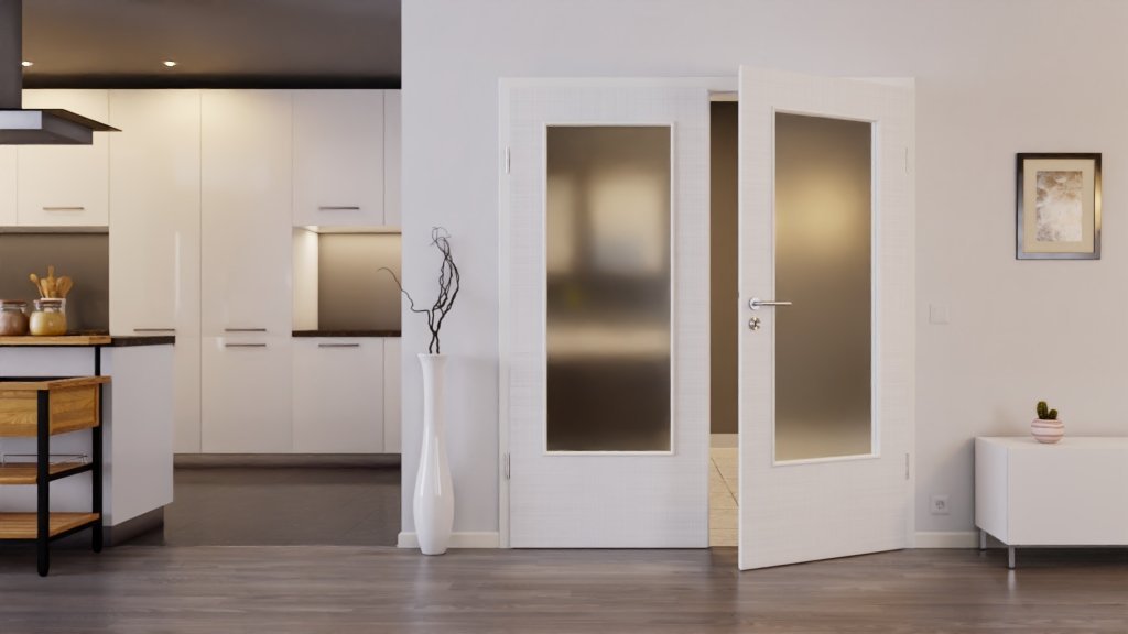 W jasnych skrzydłach drzwiowych umieszczono duże powierzchnie szklane, które zapewniają doskonałe doświetlenie pomieszczeń . Dzięki wytłoczonej strukturze drobne linie naturalnego wzoru lnu są wyczuwalne w dotyku.