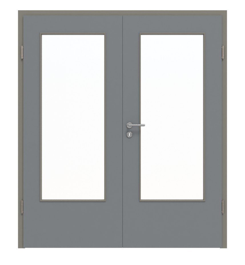 Stabilne drzwi podwójne z powierzchnią laminatową odporną na ścieranie w ultramatowym kolorze szarości: